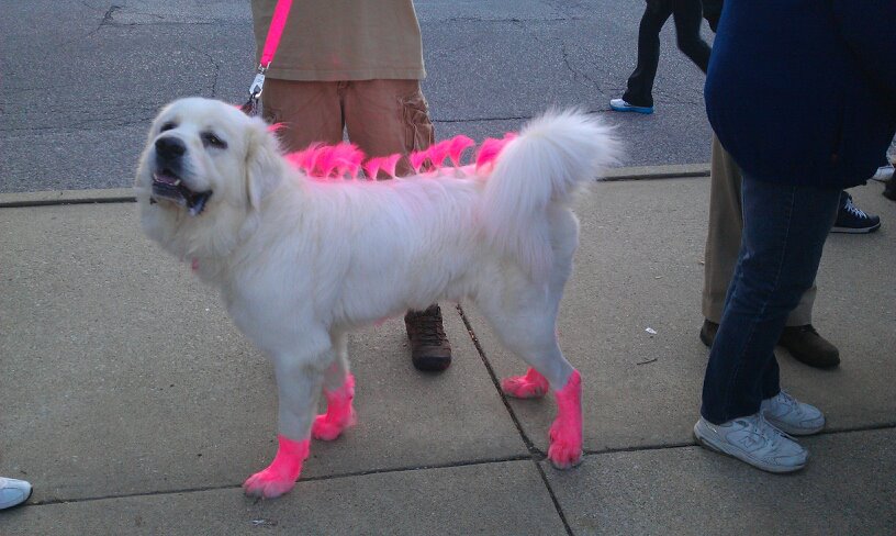 So, among 1000+ others, we had a beautiful October Saturday morning in downtown Bloomington. The beginning ceremony is a great way for survivors to celebrate and announce their name, where they are from and how long they are a survivor. Everyone is so upbeat, happy and enthusiastic. We had a common goal and that was to raise money and spread the word of early detection and prevention. They even made a song for this particular walk! Maggie and Pete made lots of friends and got tons of attention!