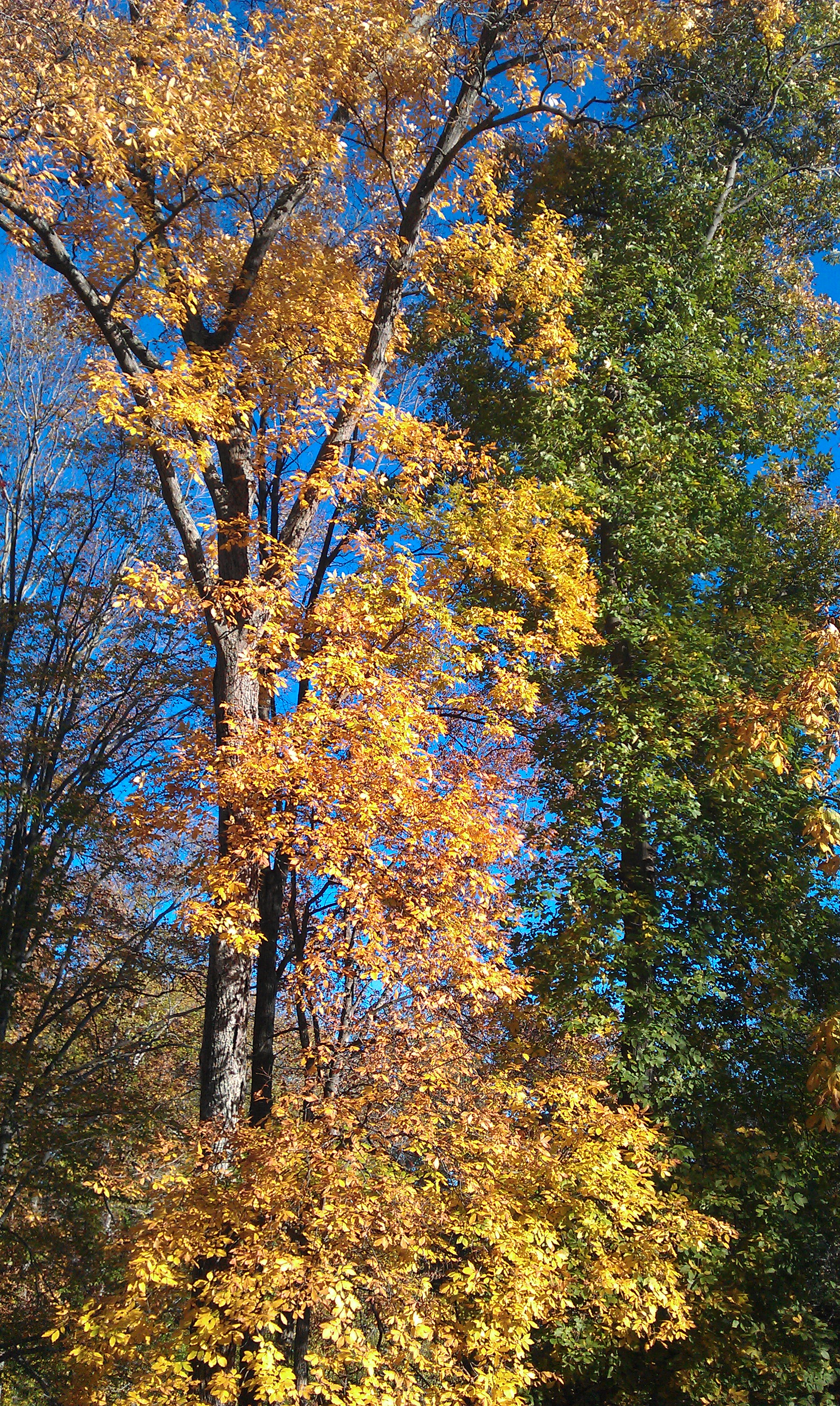 - late fall and most trees have lost their leaves, some are still hanging in strong