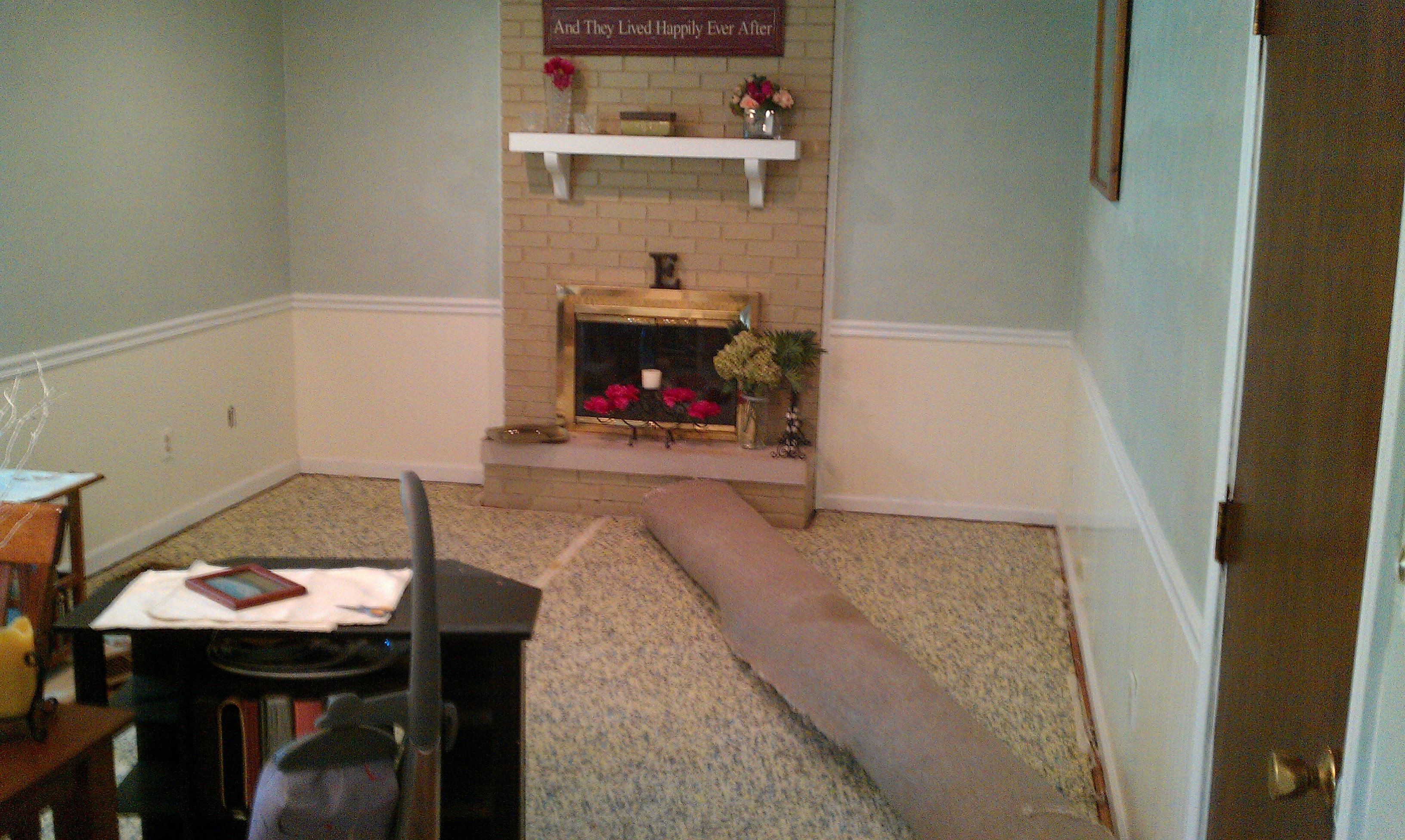 Well, the plan was to shampoo our carpets. As I thought more about shampooing, I just cringed looking at that stained carpet from the previous owners in our back family room. So, I ripped it up. I have been thinking about it for years now and finally just took it upon myself to just do it. Multi layered burbur, a pad and a yet another thin layer of carpet is now in our garage and it feels great. I used my bare hands, scissors and a knife with a hook. Then, I shampooed the rest of the house.