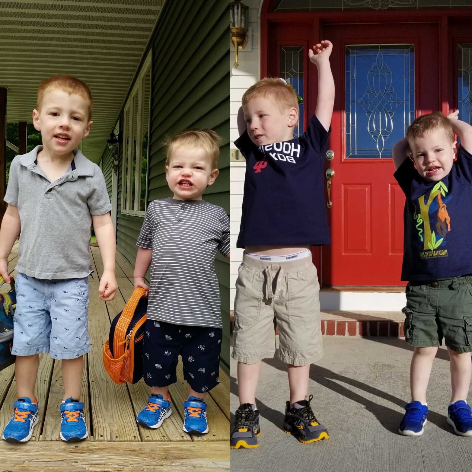 A lot has changed for these 2 boys in the past 10 months! They’ve grown from 1 and 3 year olds to much bigger 2 and 4 year olds with many significant and exciting events along the way, all in one school year! I had to stare and think about the photo on the left because I almost thought it was from 2 years ago! (And then remembered Deacon couldn’t walk 2 years ago, of course.) How has so much changed?
