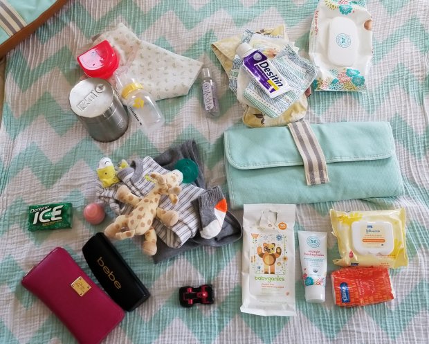 I sometimes think about when I was younger and meticulously packed my purse or bag for class in college. Now I can’t even remember what I even needed for myself. Hair brush, mirror, face powder?? Now I just need chapstick, phone and a wallet and I’m good. It’s the little ones that need all of the things!