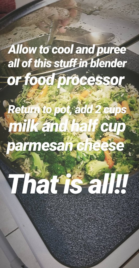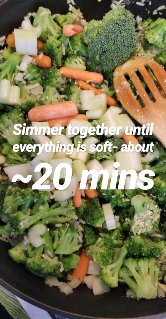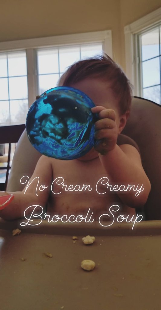 Pro Tip- I set some of the cooked broccoli aside and don’t blend it to give the soup a bit of chunky-ness to it and so that it isn’t completely like baby food.