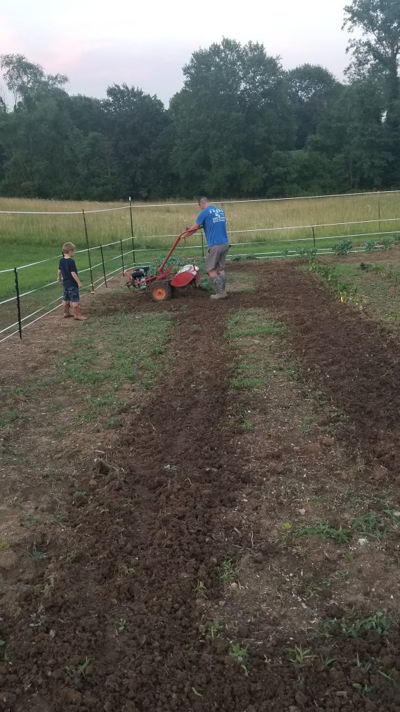 Because of the June rain and extreme heat and sun in July, we have seen a lot of recent growth and that means weeds too! Thistle and grass are also growing in our garden and it is a nightly struggle. Josh will be tilling again, in between rows, soon.