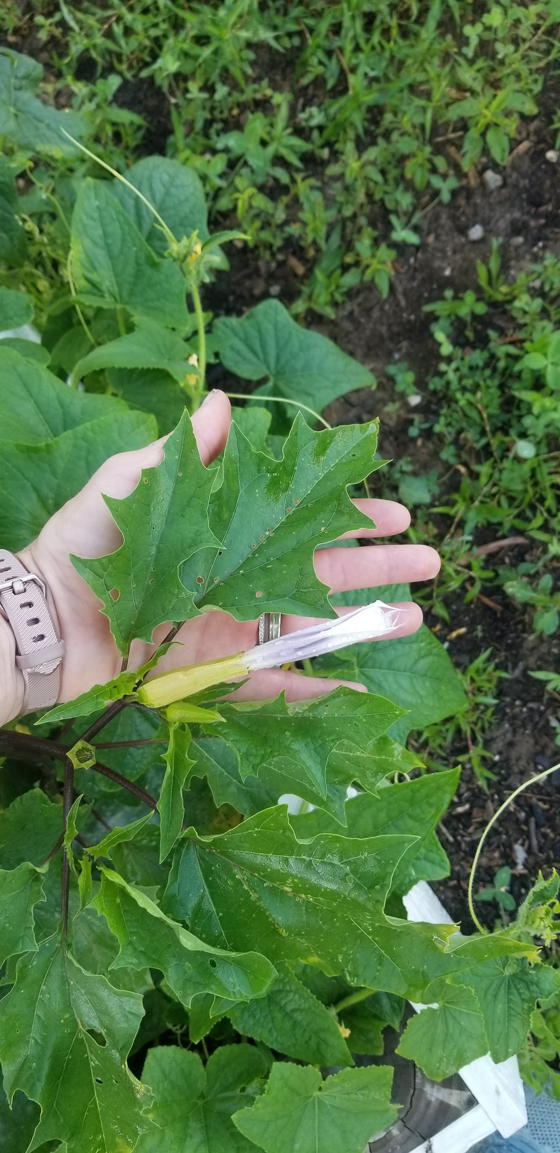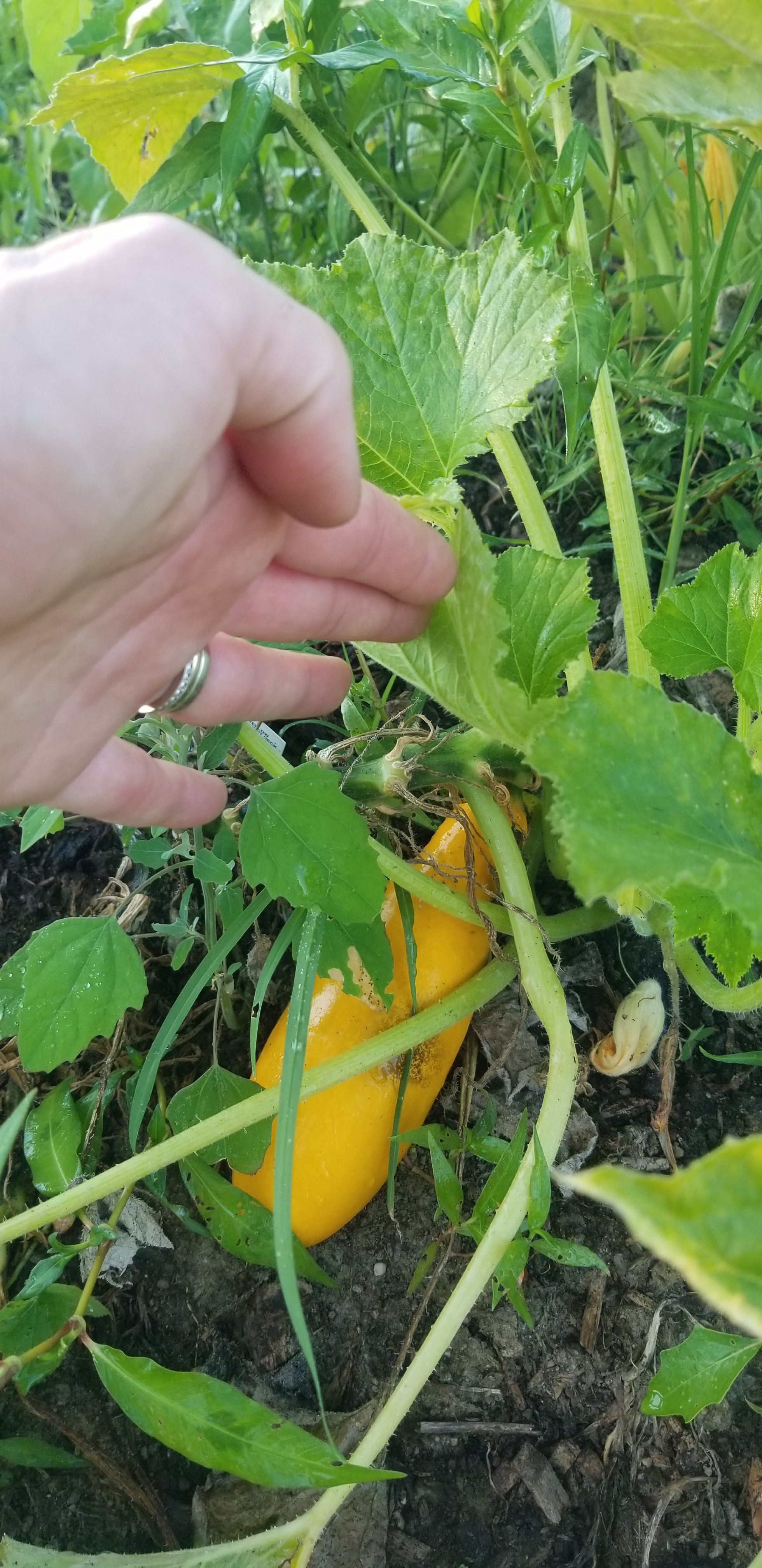 One mound alongside the boxes contain watermelon, squash, cantelope and pumpkins. The mound across the entire back of the garden contain brussel sprouts, cabbage, pumpkins, eggplant (that unfortunately fried and died), strawberries and some other varieties of squash like white acorn squash. The heat wave and days and days without rain recently have been hard for us and all other gardens across this country, I’m sure. Our neighbor across the street practically has a hobby farm. He wakes up at 6 AM every morning and walks with the hose, watering each individual plant for a slow count to 10. He has about 5 gardens and probably 10x the amount of work that we have. He also has more time on his hands to care for his beautiful gardens. He is retired and does not have little munchkins running around. Maybe we will be like that in twenty years…