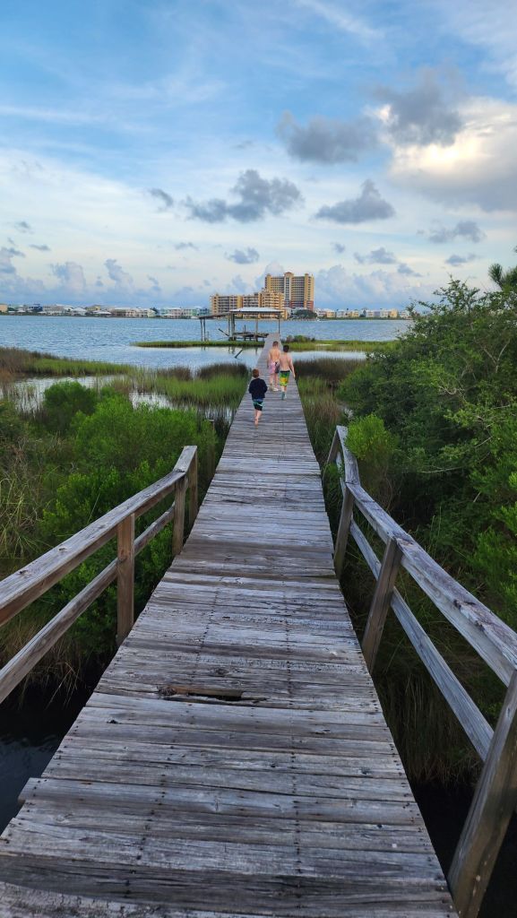 After a long, tiresome, back breaking, sweaty move in day, we all walked out through our backyard and on to the dock which sets on Little Lagoon, a small, shallow body of water (8 miles long and 1/2 mile wide) and opens up to the Gulf of Mexico. Here, we are so exhausted and felt the pressure of a long to-do list to get our family settled, but we still took the time to enjoy our family and appreciate our big accomplishment. We have finally moved to the beach!